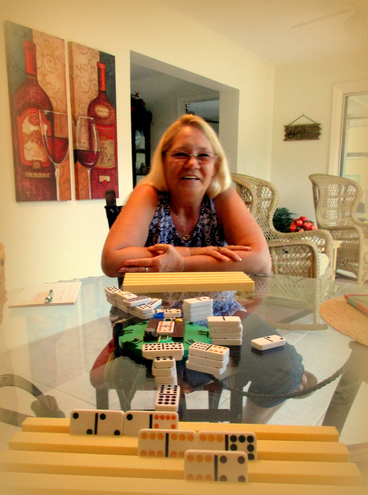 I got a very nice surprise phone call today...... Tonyia was heading here to Lake Placid so she made a stop to visit. We pulled out the Mexican Train game and she proceeded to beat my in TWO games. Enjoyed playing and enjoyed the company.